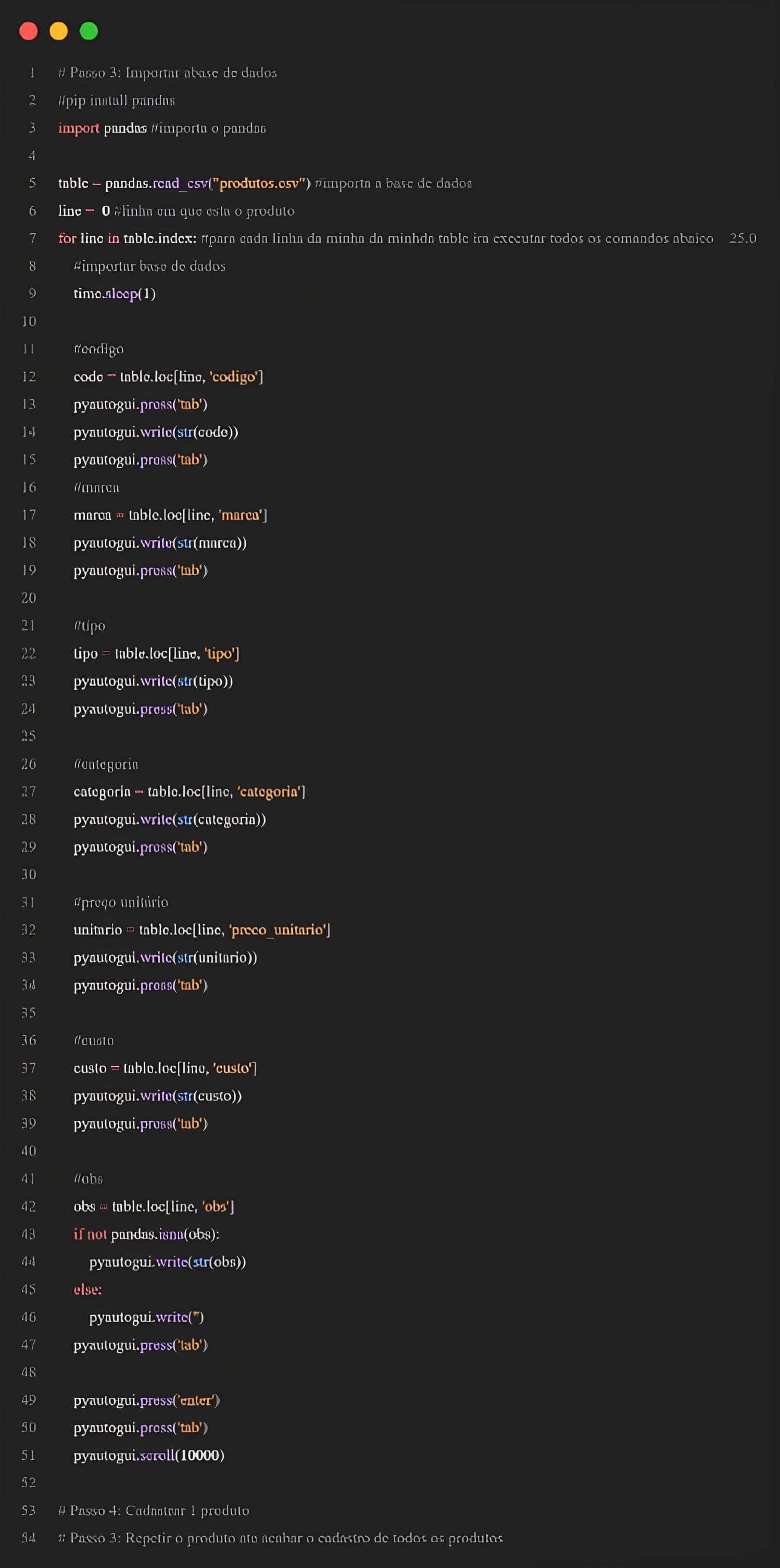 Product Registration Automation System. In this project, I developed a product registration automation system for a virtual platform, using Python. The system was designed to streamline and optimize the product registration process, eliminating manual tasks and reducing errors in registration. This made the flow of new products more efficient, facilitating inventory updating and management and improving data accuracy.